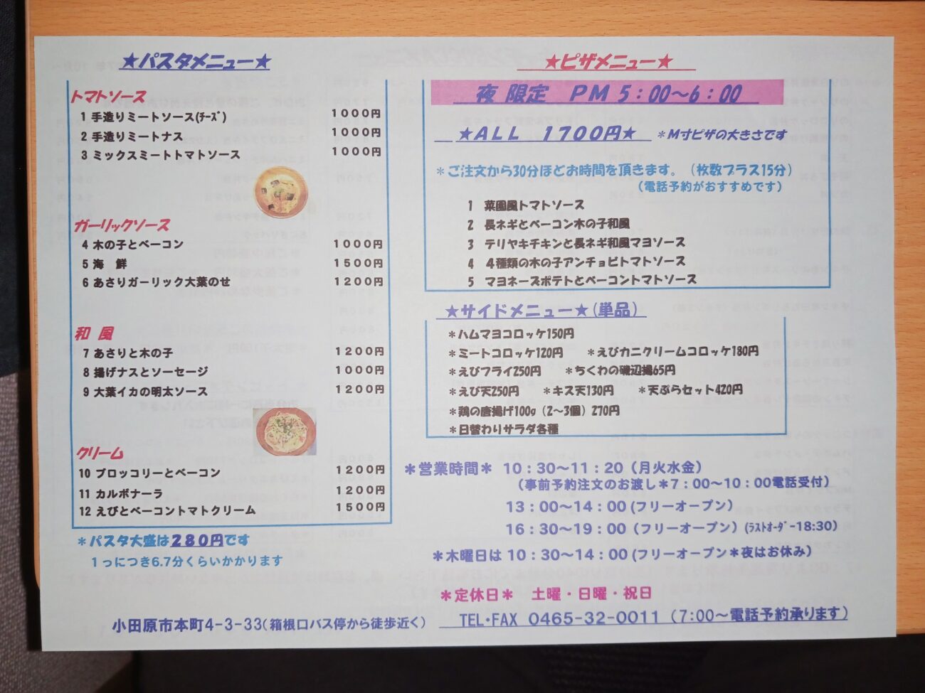 お弁当50種 パスタ12種 ピザ5種 (夜のみ)