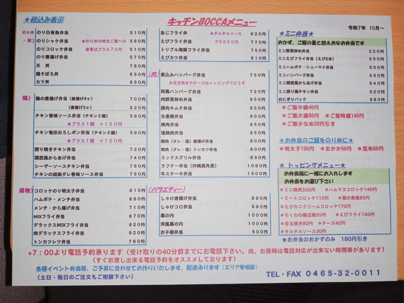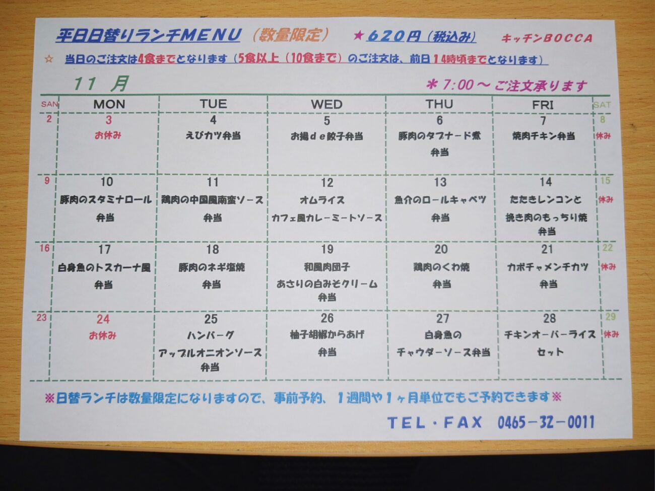 数量限定なので、電話予約がお勧めです。(前日なら確実!)