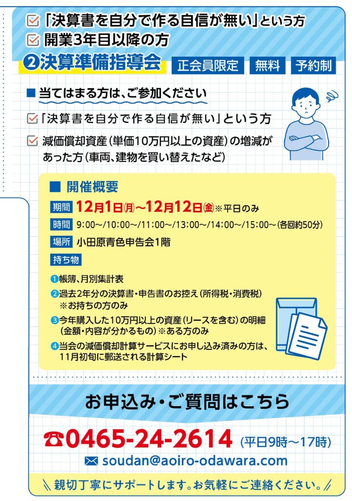 決算準備指導会 12/1~12/12 決算書作成が不安な方へ【会員限定】【予約制】