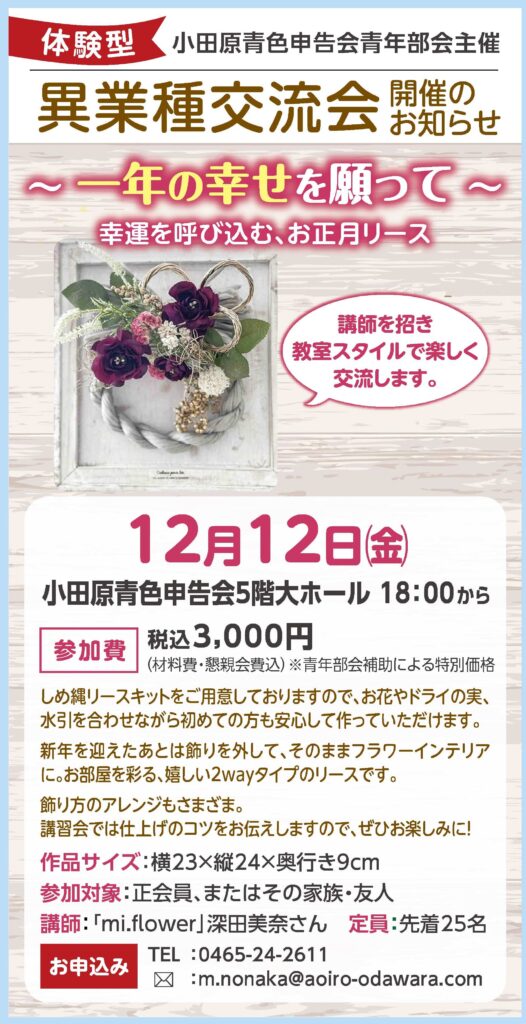 TEL(平日9時~17時) 0465-24-2611 青年部会担当