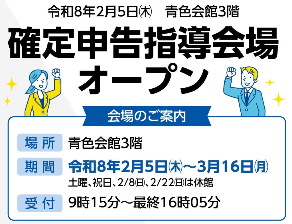 令和8年2月5日(木) 確定申告指導会場【事前申込制】オープン