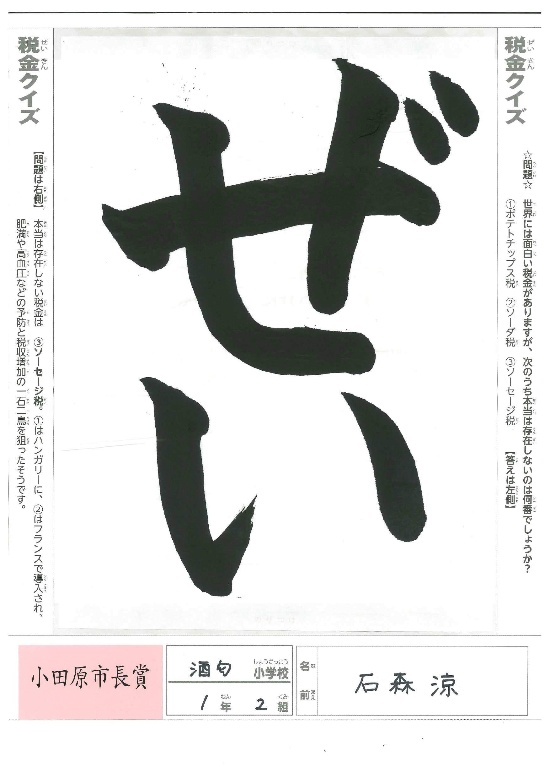 小学生 税の書道展