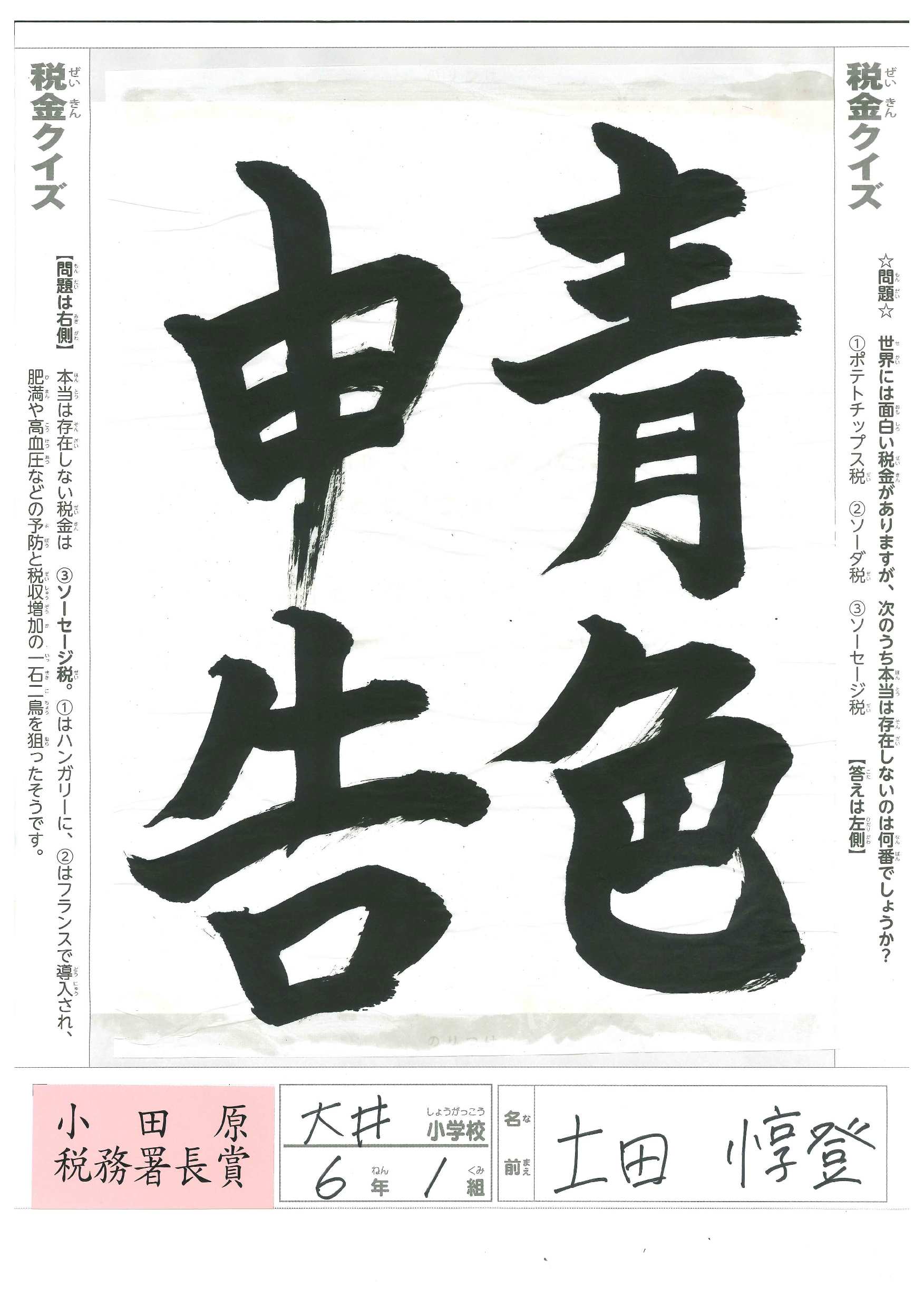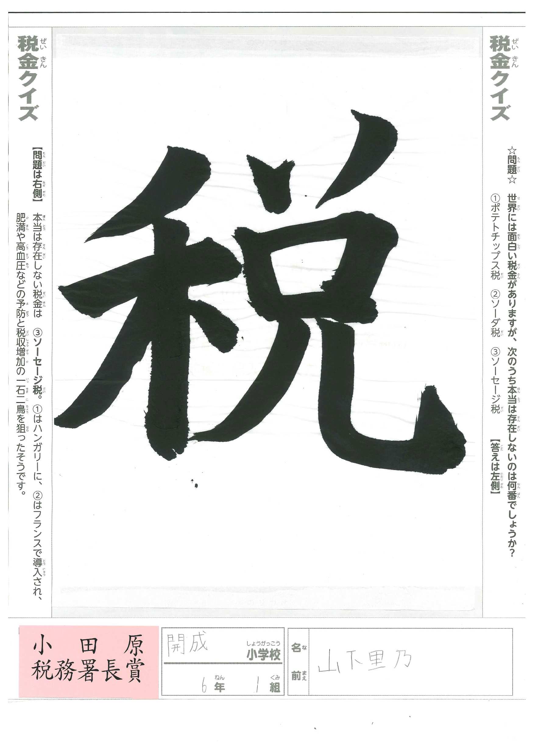小学生 税の書道展